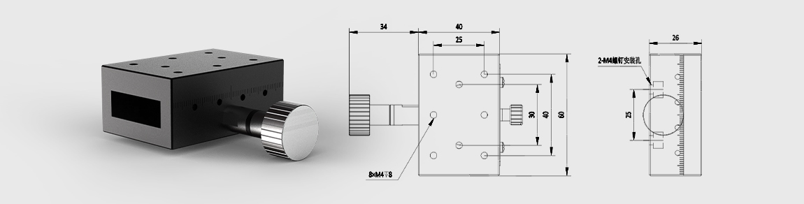 Dovetail Stage Platform Size=40×60mm Travel=±20mm