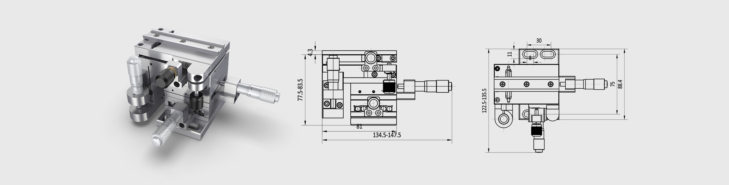 - 行程 Tx:13mm;Ty:13mm;Tz:6mm;θy:-2°~ 4°;θz:-4°~ 4°