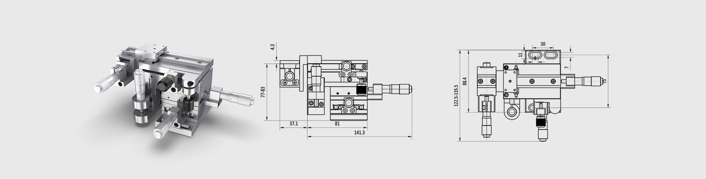 - 行程 Tx:13mm;Ty:13mm;Tz:6mm;θx:±10°;θy:-2°~ 4°;θz:-4°~ 4°