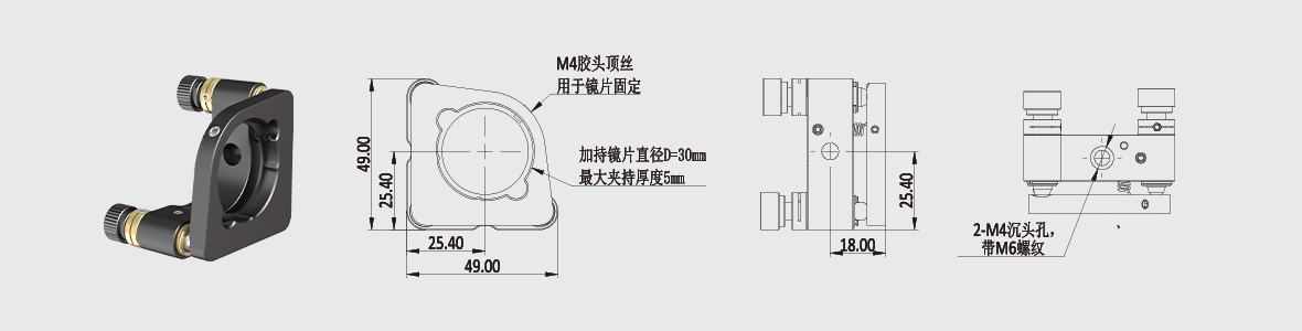 Standard Optical Mounts Optics Diameter=30mm Spring