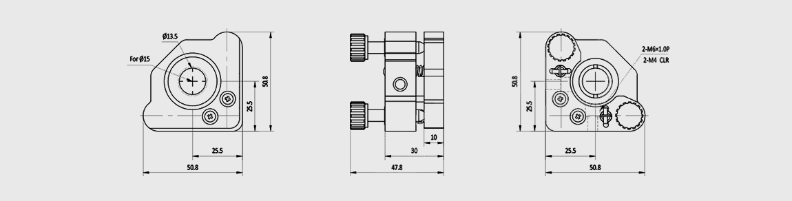 * Using thread rings fixed different size optical components in a firmly position * Especially suitable for thin optical components. There is an M4 countersunk hole on both sides of base for easy fixing. * By rotating the stainless steel high precision screw to move forward * Oil is applied between the gaps, screw gap almost can be neglected * Stainless steel screw and bronze ring bushing combined together, make it more smoother operation and long-term stability * Using two stainless steel rods as sliding guide,make it more smoother and cheaper. * Avaliable for Maximum thickness of optical components: 4mm * Tip/Tilt Range:±3.5°