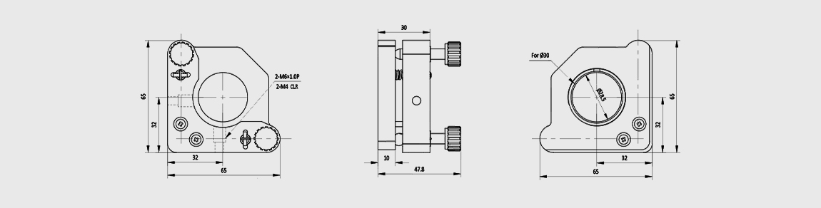 * Using thread rings fixed different size optical components in a firmly position * Especially suitable for thin optical components. There is an M4 countersunk hole on both sides of base for easy fixing. * By rotating the stainless steel high precision screw to move forward * Oil is applied between the gaps, screw gap almost can be neglected * Stainless steel screw and bronze ring bushing combined together, make it more smoother operation and long-term stability * Using two stainless steel rods as sliding guide,make it more smoother and cheaper. * Avaliable for Maximum thickness of optical components: 4mm * Tip/Tilt Range:±3.5°