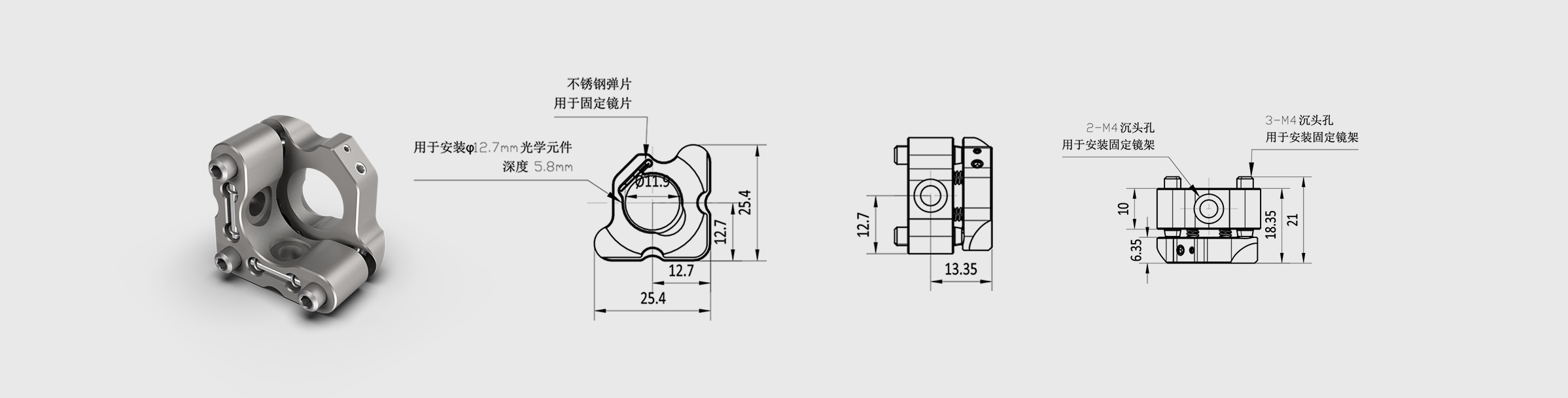 Stainless Steel Mirror Mounts Size of Compatible Optics=Φ12.7mm Adjusters3