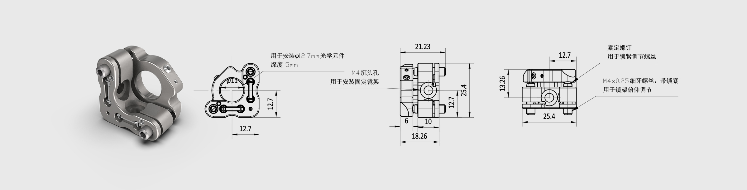 Stainless Steel Mirror Mounts Size of Compatible Optics=Φ12.7mm Adjusters2