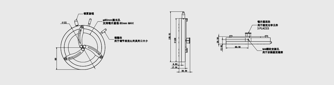 Self-Centering Lens Mounts Clamping Optic SizeΦ8~76mm