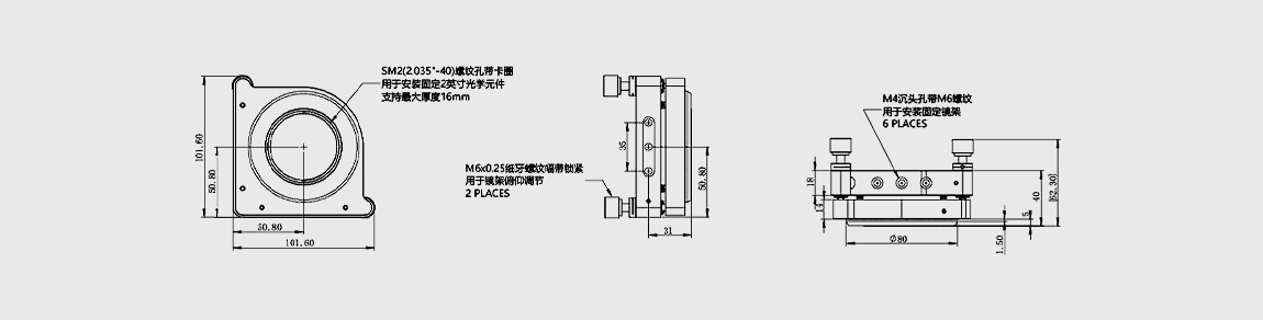Tip-Tilt / Rotation Mount Size of Compatible OpticsΦ50.8mm