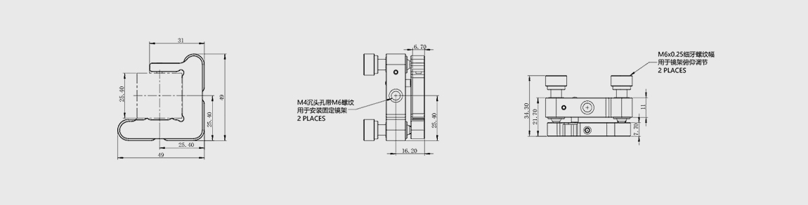 Kinematic Mounts for Rectangular Optics Max Optic Height 25.4mm