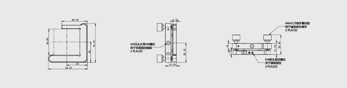 Kinematic Mounts for Rectangular Optics Max Optic Height 50.8mm