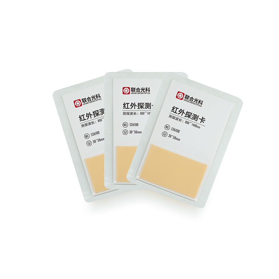 The IR laser viewing cards can convert invisible near-infrared light into visible light, thereby enabling observation and tracking of near-infrared light beams. Its principle is to use upconversion fluorescent materials to emit high energy short wave light excited by low energy long wavelengths, generally referring to the conversion of near-infrared light into visible light. Gu Optics' IR laser viewing cards are suitable for observing near infrared light at 800-1400 nm. Our laser viewing card has a photosensitive area extending to the edge of the card, and a handheld area is set at the other end, making it easier for you to align with the optical path.