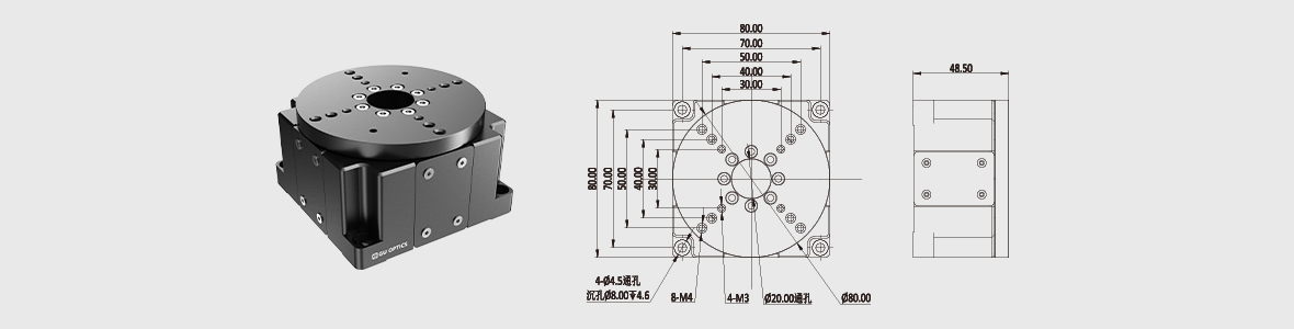 Motorized Nano Rotation Stages Stage Size=80mm Travel=360°