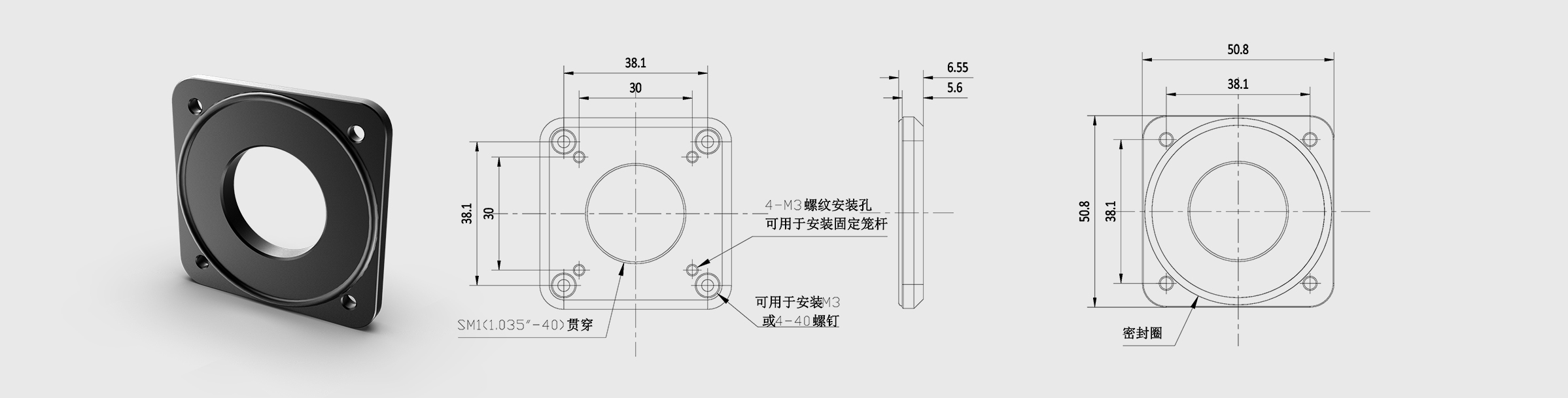 GU Optics offer two types of Cube Cover Plate, SM1 thread through-hole covers and M4 threaded hole covers, compatible with 30 mm cage systems. Used with 530012 or 530013, can be combined into four-side, five-side or six-sided SM1 threaded through-hole cage cubes.