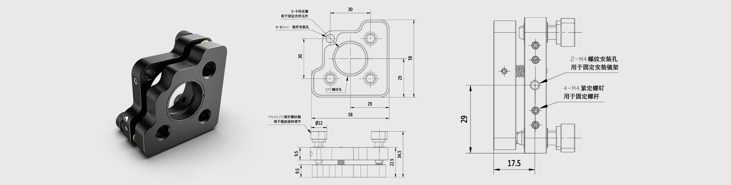 Mirror Mount for 30 mm Cage Systems Clamping Size 25.4mm M4 Retaining Ring Fixed