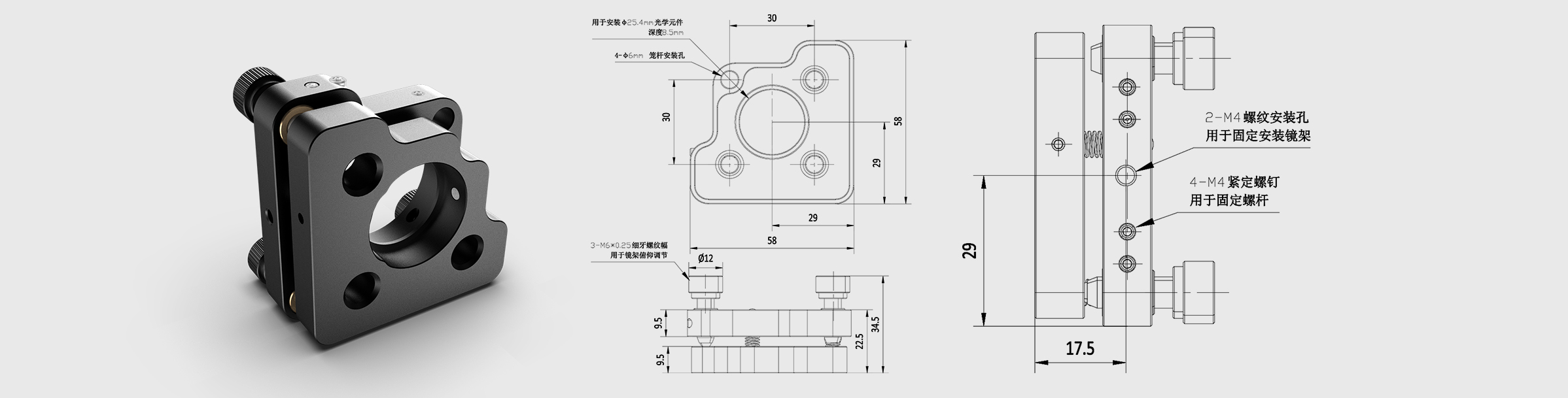 Mirror Mount for 30 mm Cage Systems Clamping Size 25.4mm M4 Nylon-Tipped Setscrew