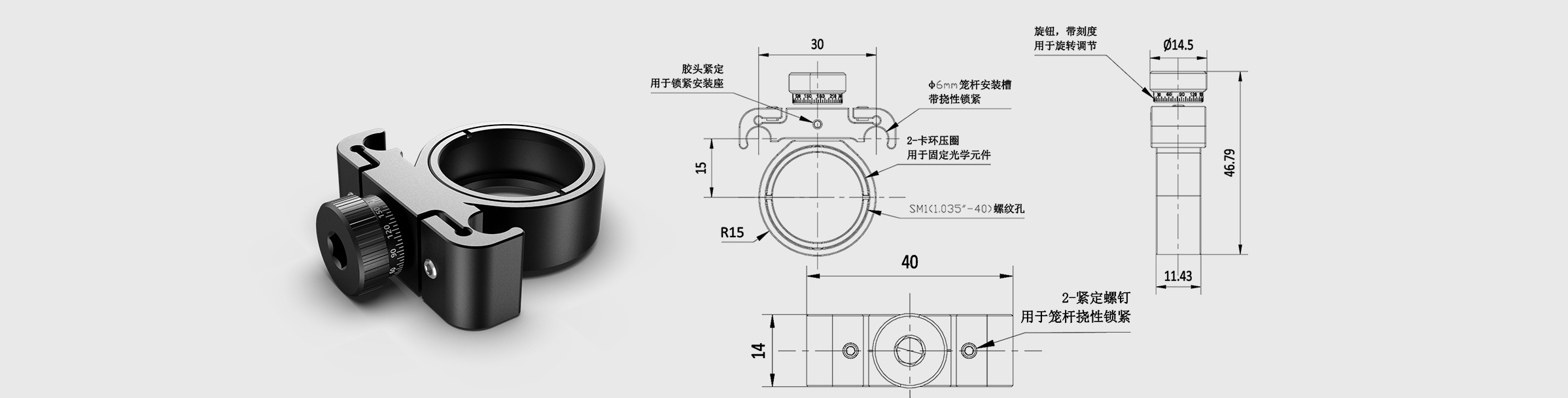 Mirror Mount for 30 mm Cage Systems Clamping Size 25.4mm flexure-style clamp + two setscrews