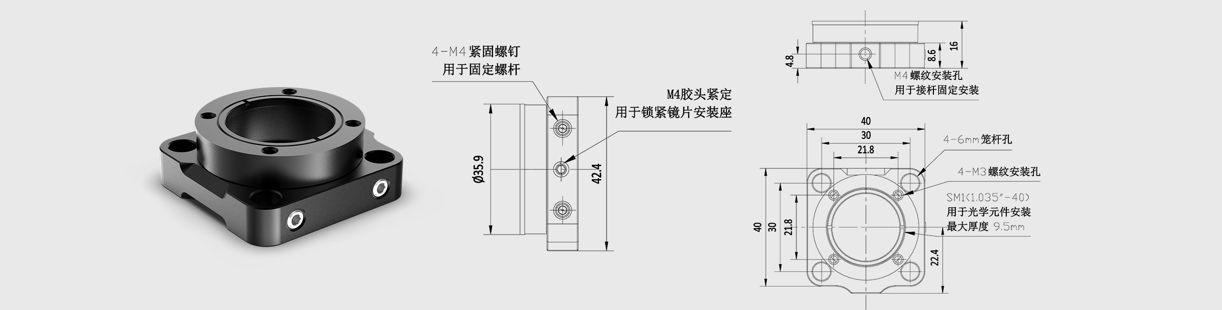 30 mm Cage System Rotation Mounts Clamping Size 25.4mm Retaining Ring Fixed M4