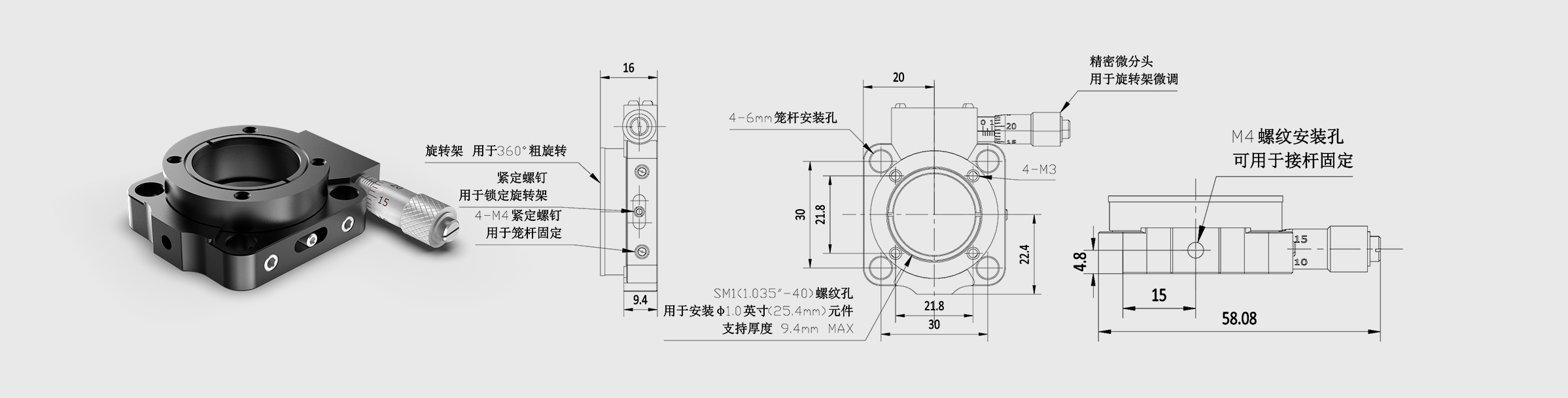 30 mm Cage System Rotation Mounts Clamping Size 25.4mm Retaining Ring Fixed M4 (Precision Micrometer)