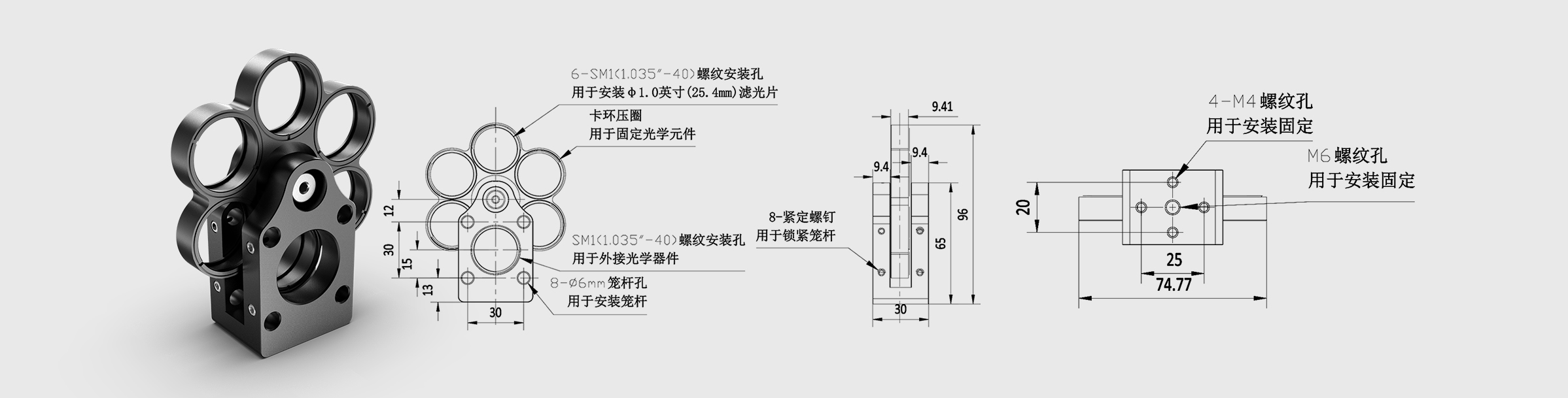 30mm Cage System Filter Wheels Number of Filters:6 M6&M4