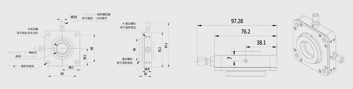 60mm Cage System XYZ Translation Mount Size of Compatible Optics 25.4mm