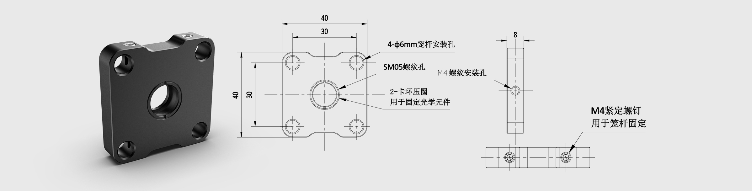 30 mm Cage Plates Optic Diameter Φ12.7mm Retaining Ring Fixed