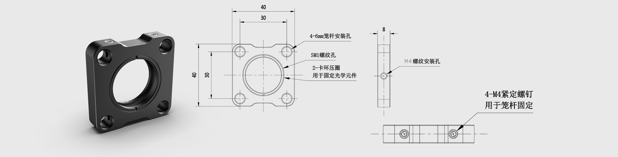 30 mm Cage Plates Optic Diameter Φ25.4mm Retaining Ring Fixed