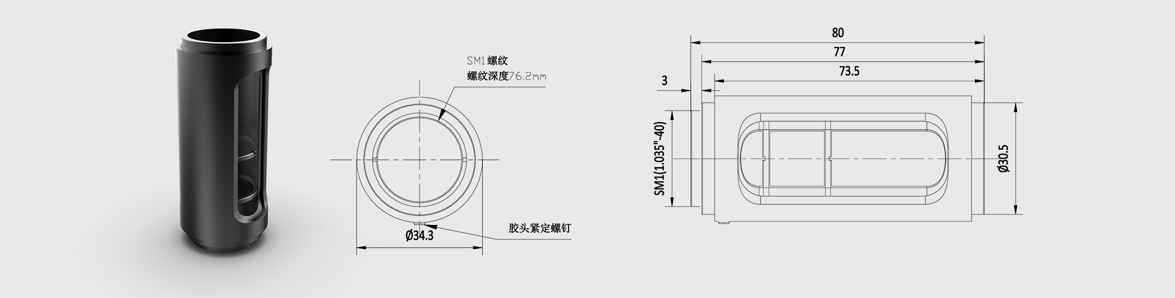 Ø1" Lens Tubes L=75mm Slotted Stackable Lens Tubes