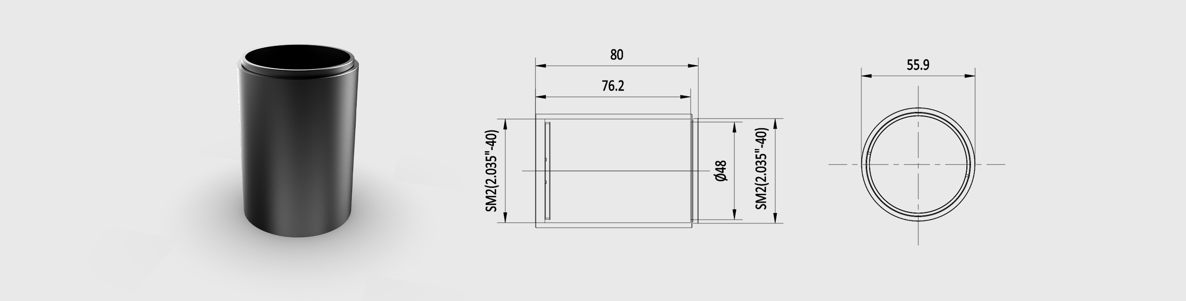 Ø2" Lens Tubes L=75mm Stackable Lens Tubes