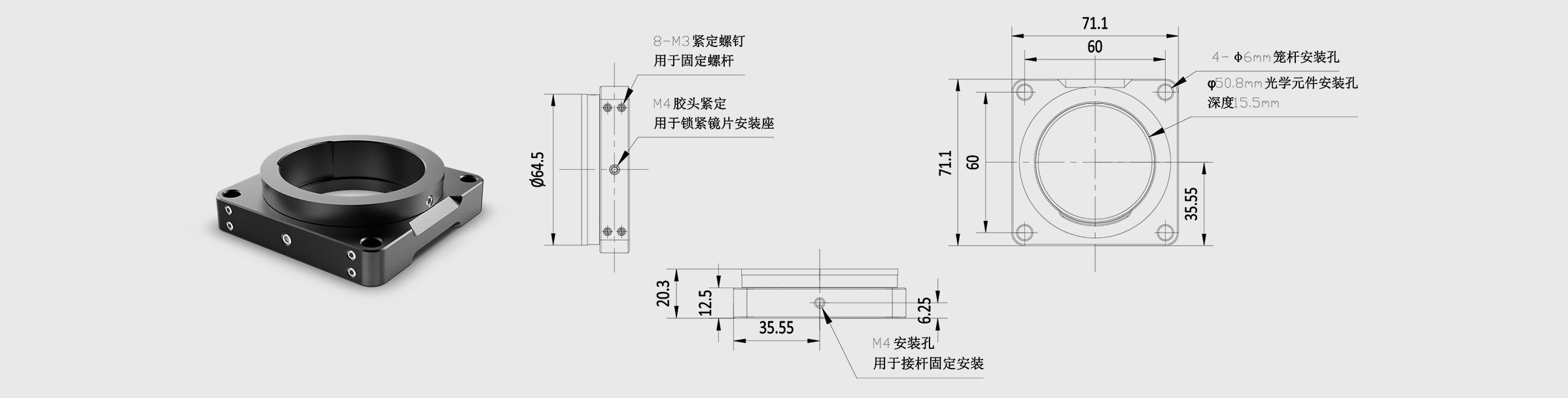 60 mm Cage Rotation Mount Optic DiameterΦ50.8mm Nylon-Tipped Setscrew