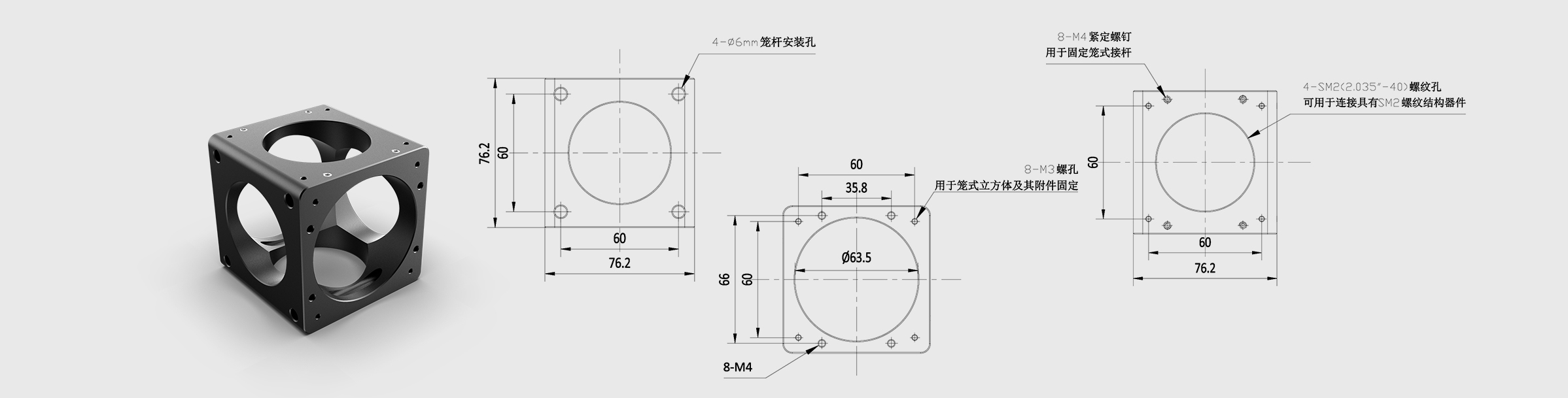 60 mm Cage Cubes Φ6mmThrough Holes M3&M4