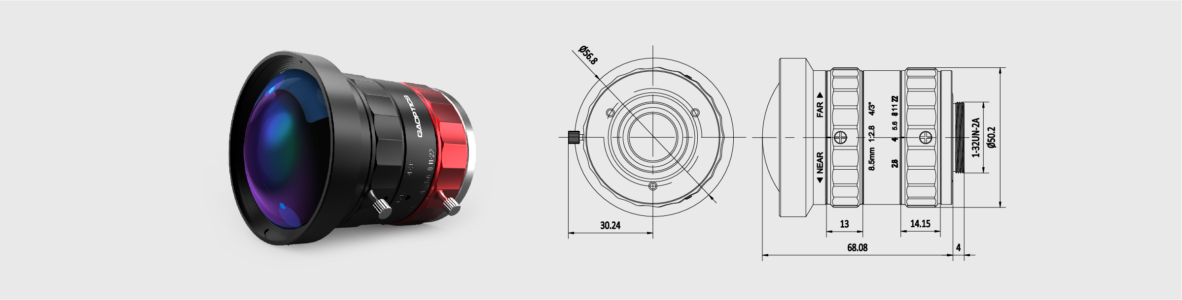 4. Standard C-mount design, matching C-mount industrial cameras.