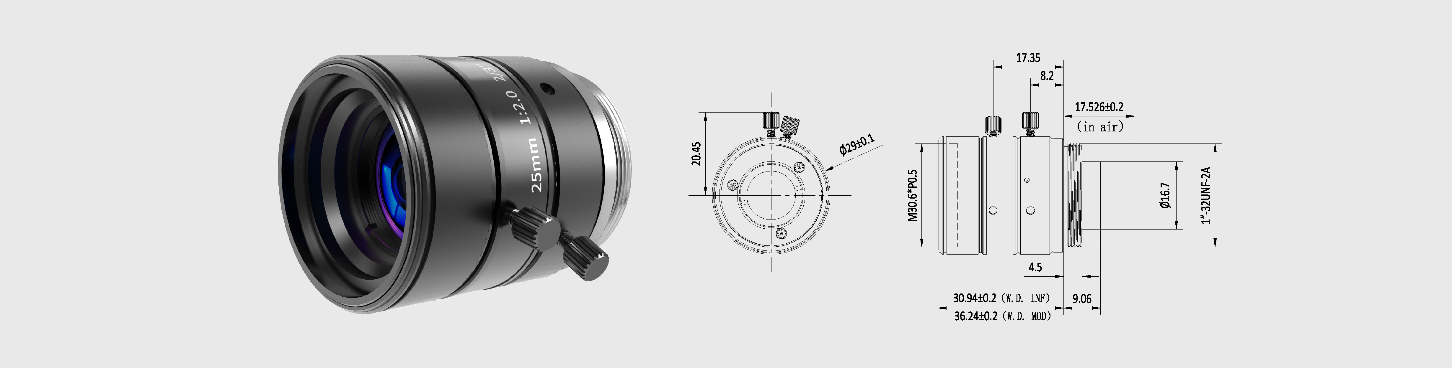 25mm 2/3" F2.0 5M Fixed Focal Length Lens