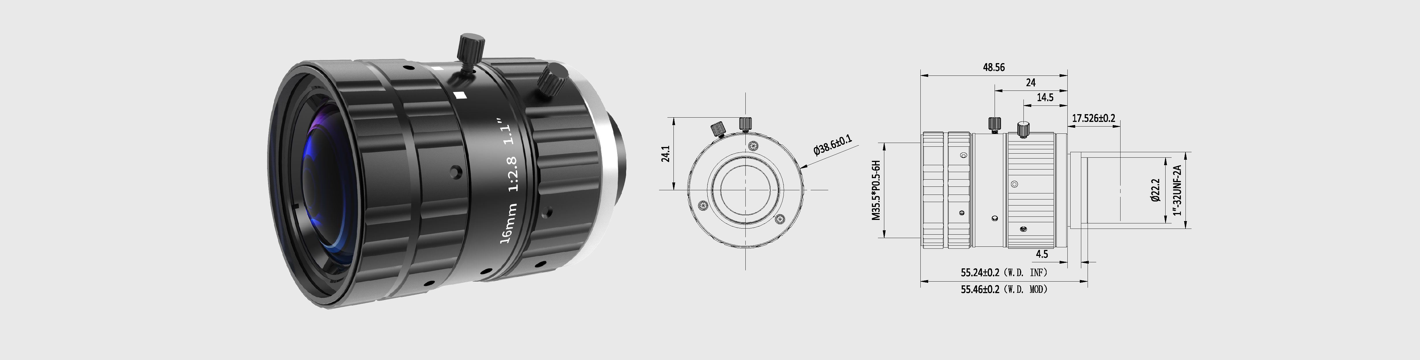 16mm 1.1" F2.8 12M Fixed Focal Length Lens