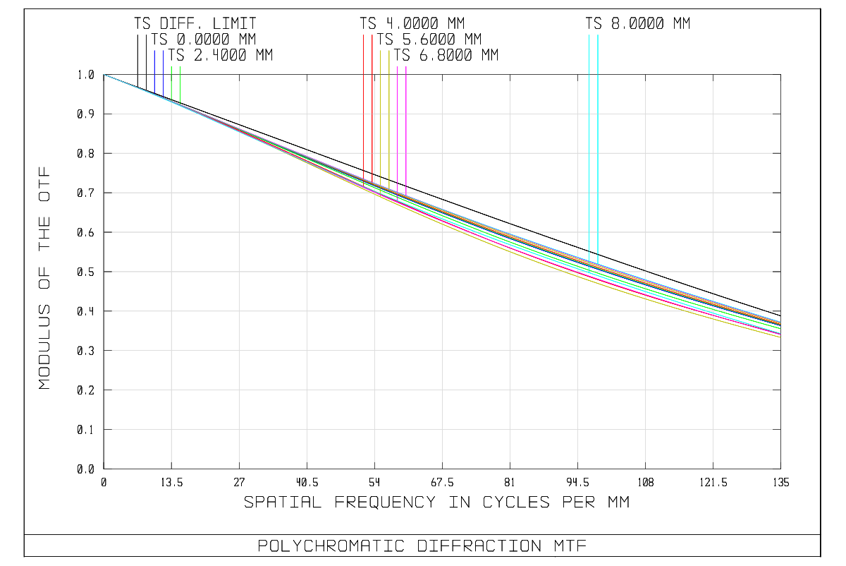 | 8 | Resolution/MTF @F6.4 | >30%@140lp/mm | |