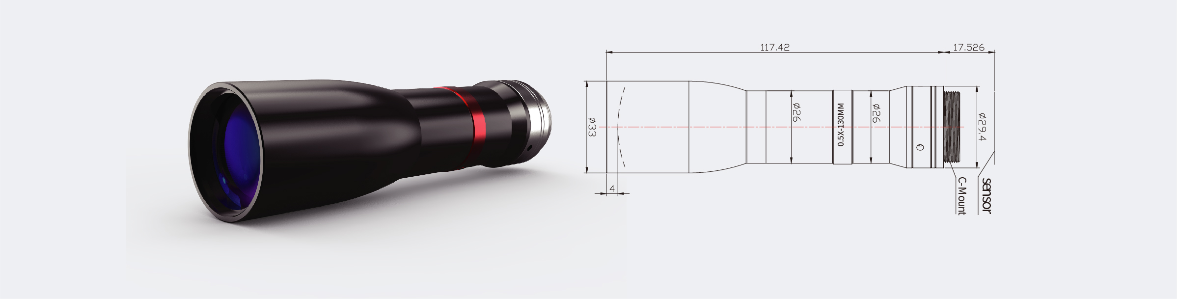 | 15 | Lens Size(Dia.×Length) | Ф33.0×117.42mm | |