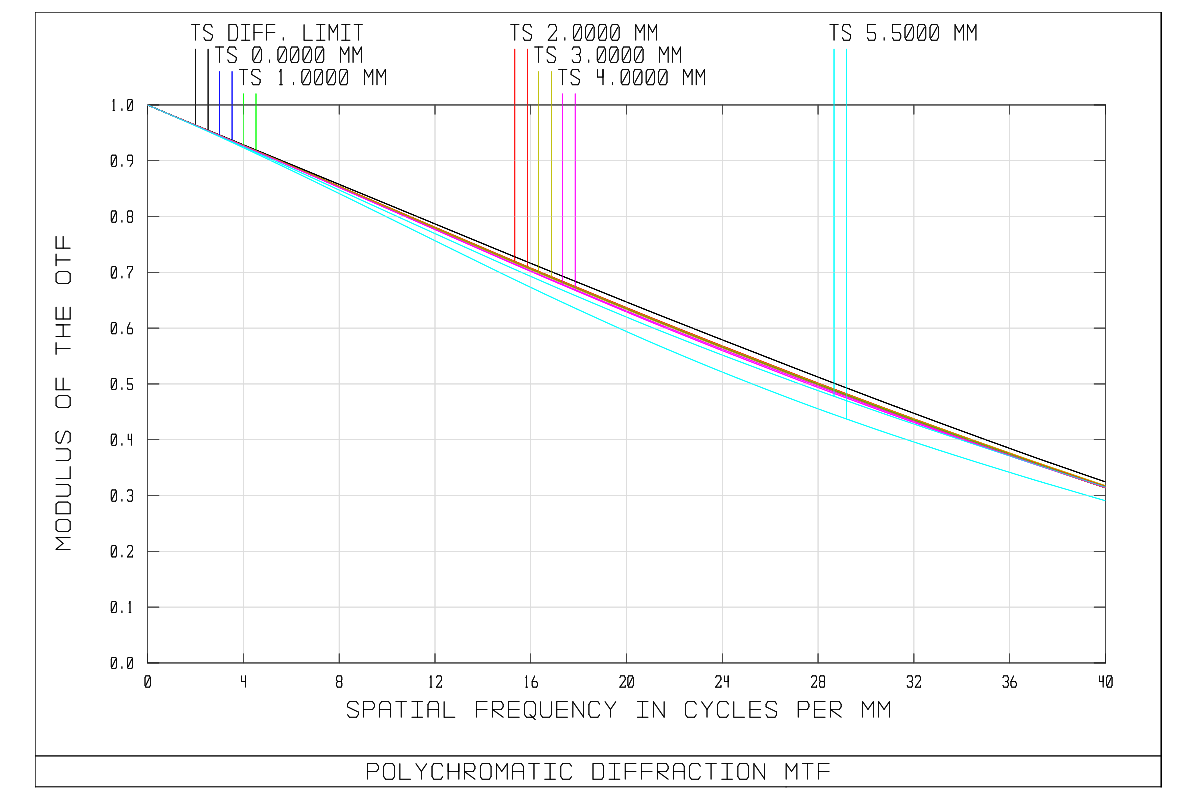 | 8 | Resolution/MTF @F24 | >30%@40lp/mm | |