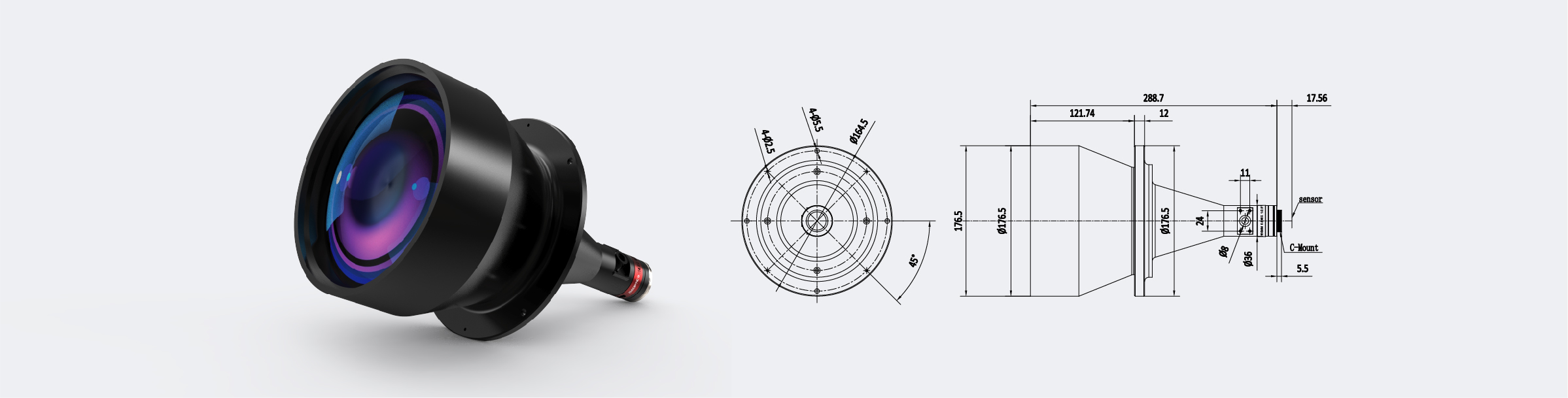 | 13 | Lens Size(Dia.×Length) | Ф176.5×288.7mm | |