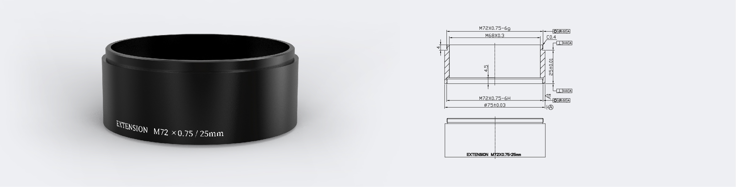 Extension Ring M72 to M72 L=25mm