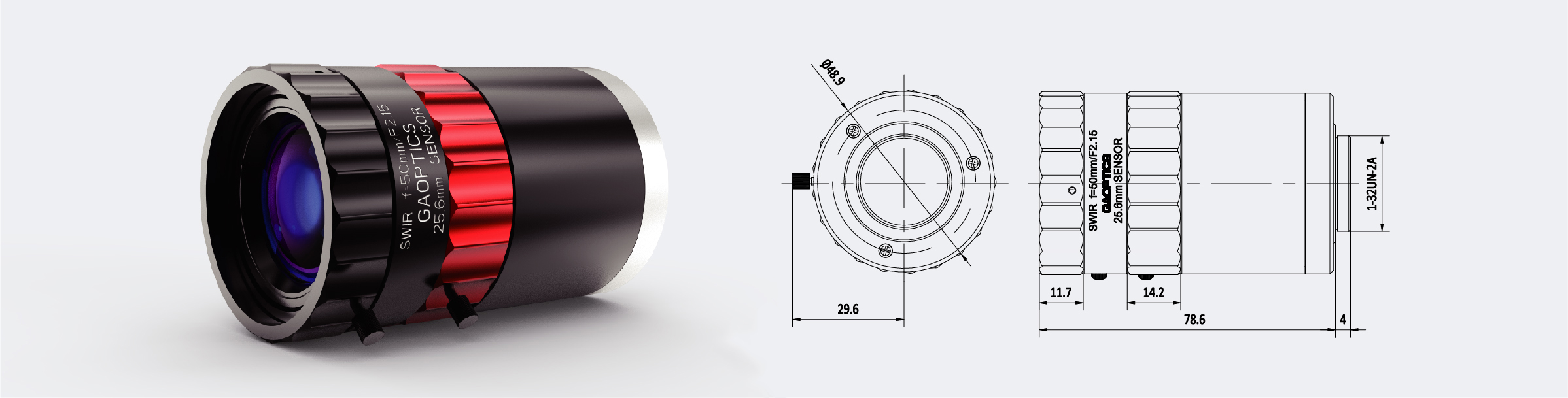 Focal Length50mm 25.6mm 800-1800nm SWIR Lens
