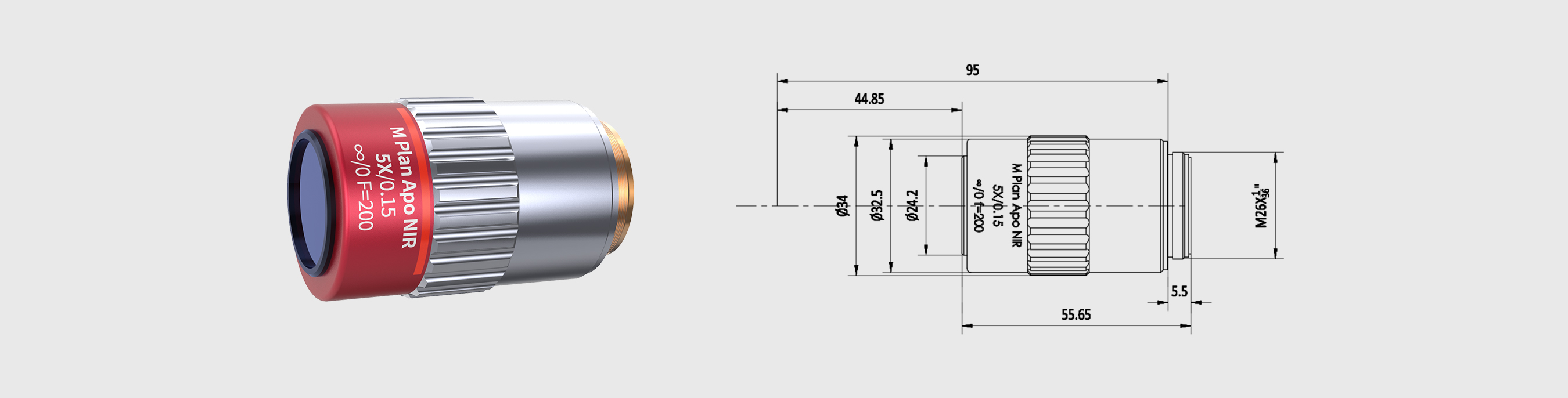 5X M PLAN APO NIR Infinity Corrected LWD Microscope Objective
