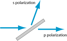 - 只包含一层镀膜的玻璃片的片状偏振器。通常设计入射角为布儒斯特角,这样可以避免背向的透射光的反射损耗。如果入射角为其它角度,例如45°(最常见),则需要在背面采用抗反射涂层,并且前面的设计层的结构也比较困难。