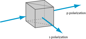 - 偏振立方体通常是对 45° 棱镜涂覆涂层,然后将另一个的 45° 棱镜黏在其上,得到立方体结构。入射和出射面通常都涂覆抗反射涂层。常用的MacNeille立方体设计的基本原理是在所有入射面以布儒斯特角入射消除p偏振的反射。因此引入布拉格反射镜很容易得到s偏振很高的反射率,并且不会引入对p偏振的反射。布儒斯特角条件需要衬底材料的折射率是合适的(给定涂层材料)。这种偏振片适合很大的波长范围,但是入射角度范围比较窄(几度)。