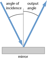 反射镜是能够反射光的光学器件。但是,只有当入射角等于反射角的光学装置才称为反射镜(如图1)。这表示衍射光栅等,并不能称作反射镜,尽管它们可以反射光。